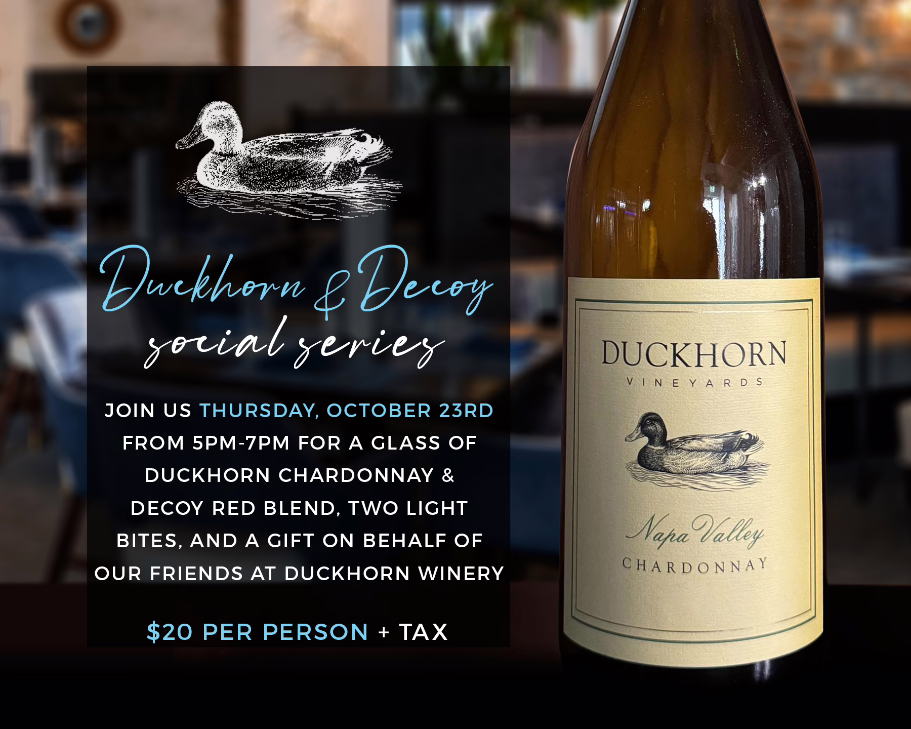 $20 per person + tax | 🎁 Includes a small gift from Duckhorn Winery